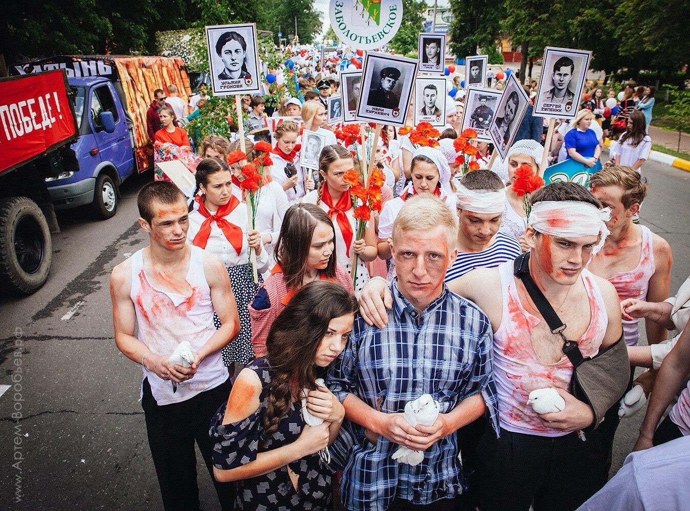 Вот я думаю, что если бы мой покойный папа увидел свою внучку, наряженную в окровавленные бинты или в гимнастерку, подпоясанную георгиевской лентой, он, наверно, подумал, что враги провели атаку на Россию с помощью газа, лишающего население разума. Потому что из народной трагедии устроить такой косплей может только сумасшедший. (Правда, так эксплуатировать народную трагедию может не сумасшедший, а очень расчетливый человек). Представляю, в каком шоке были бы те молодые фронтовики, которых мы видели в нашем детстве.